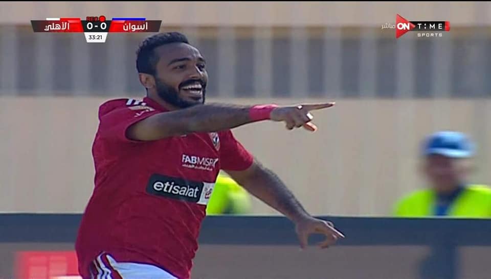أحرز محمود عبد المنعم كهربا الهدف الأول للنادي الأهلي أمام أسوان في الدقيقة 34 من عمر المباراة، حيث أرسل حسين الشحات تمريرة عرضية من جهة اليمين لداخل منطقة الجزاء وحولها كهربا براسية من على القائم الثاني مرت على يمين الحارس لداخل الشباك.