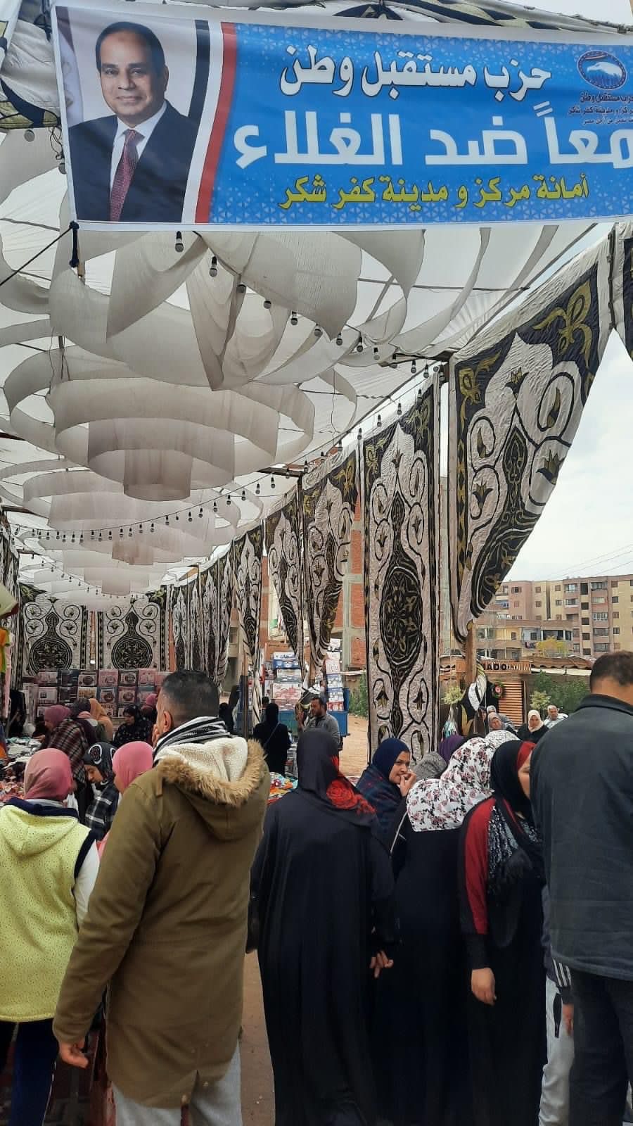 وفي محافظة القليوبية، أقامت أمانة المرأة بمركز ومدينة كفر شكر، معرضا لبيع المواد الغذائية والمفروشات والملابس بأسعار مخفضة، داخل المدينة، وشمل المعرض بيع مواد غذائية ومفروشات وجهاز للعرائس وأدوات منزلية، وشهد المعرض إقبالا كثيفا من المواطنين منذ بداية افتتاحه.