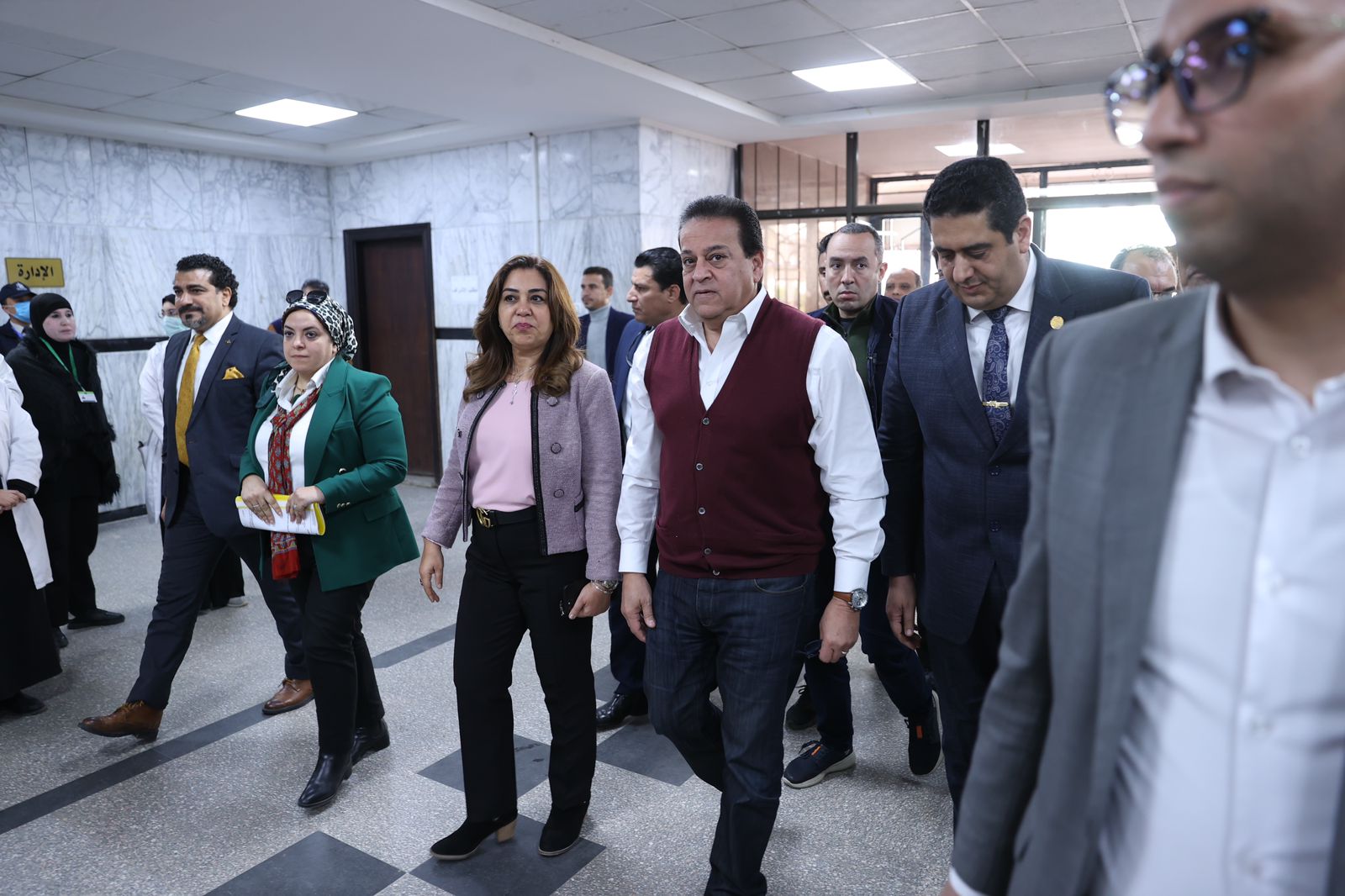 رافق الوزير خلال جولته، الدكتور أنور إسماعيل مساعد وزير الصحة والسكان للمشروعات القومية، والدكتور حازم الفيل رئيس قطاع الطب العلاجي، والدكتور محمد ضاحي رئيس الهيئة العامة للتأمين الصحي، والدكتورة مها إبراهيم رئيس أمانة المراكز الطبية المتخصصة، والدكتور سيد عبد الجواد وكيل الوزارة بالمحافظة، والدكتور محمد فوزي مدير وحدة الرقابة الداخلية بالوزارة، والدكتور بيتر وجيه نائب رئيس أمانة المراكز الطبية المتخصصة.