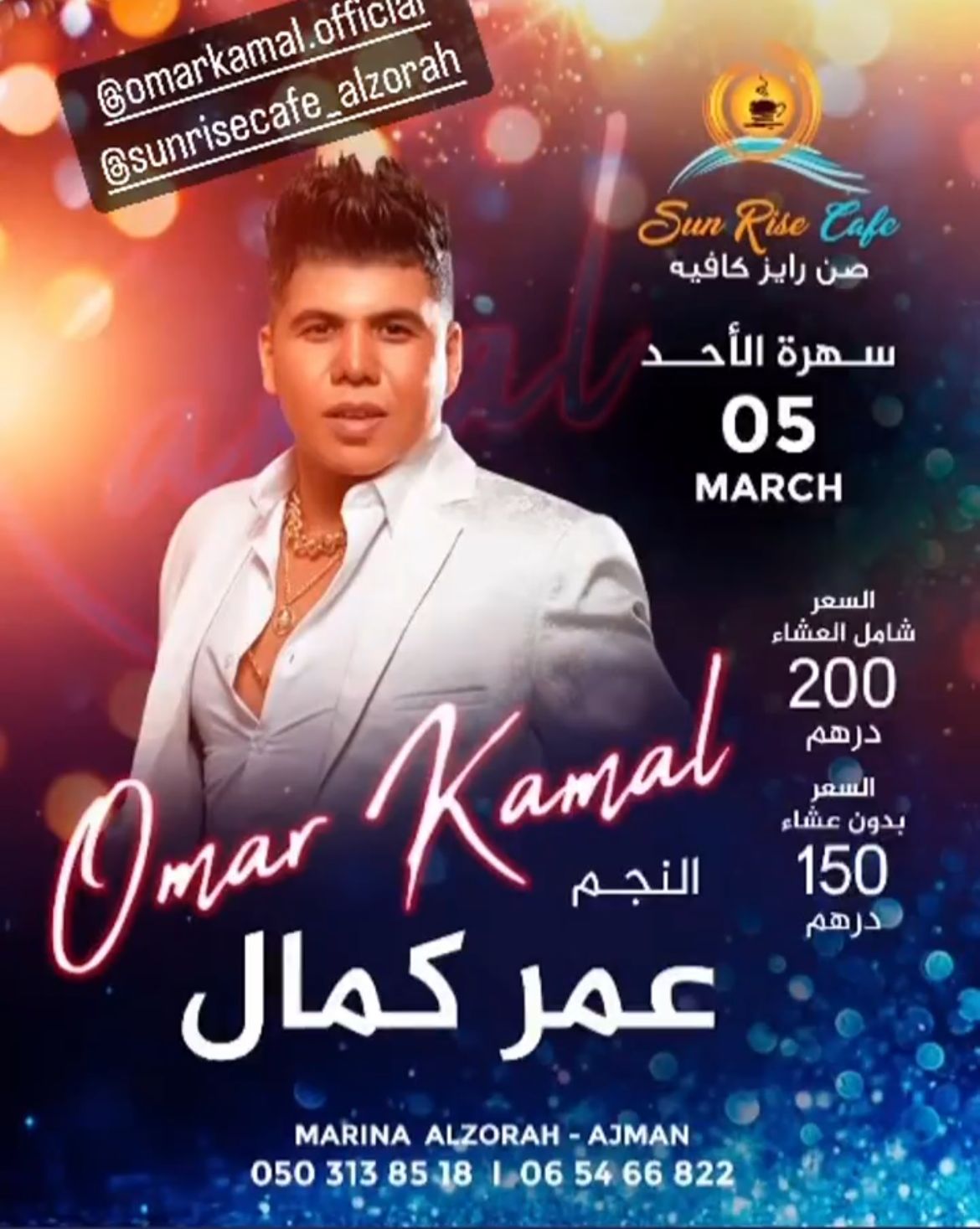 يستعد مطرب المهرجانات الشعبية عمر كمال لإحياء حفلًا غنائيًا في دبي، والذي من المتوقع أن يكون تحت شعار كامل العدد.