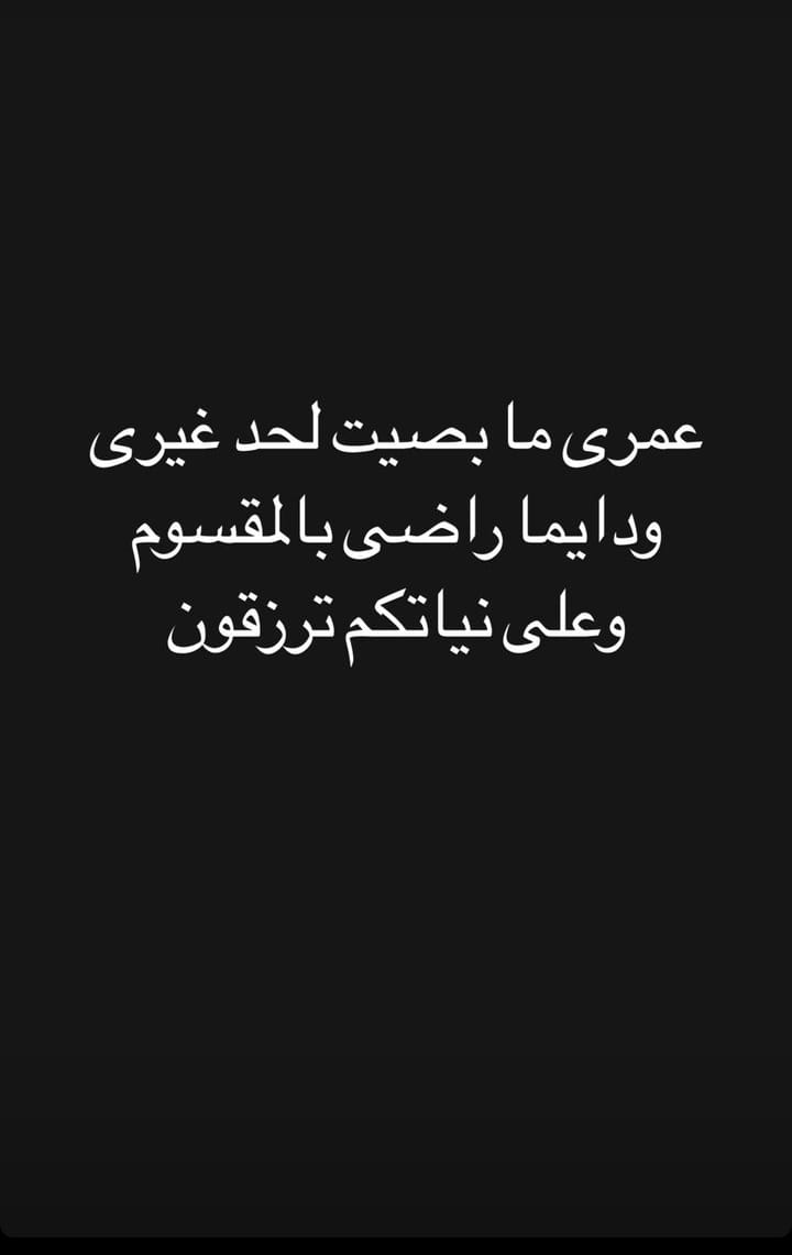 وكتب عنبة عبر خاصية ستوري: عمري ما بصيت لحد غيري ودايمًا راضي بالمقسوم وعلى نياتكم ترزقون.