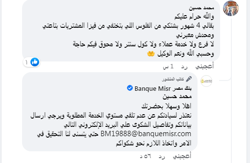 عميل بنك مصر يشكو: "حرام عليكم الفلوس بتختفى من الفيزا"