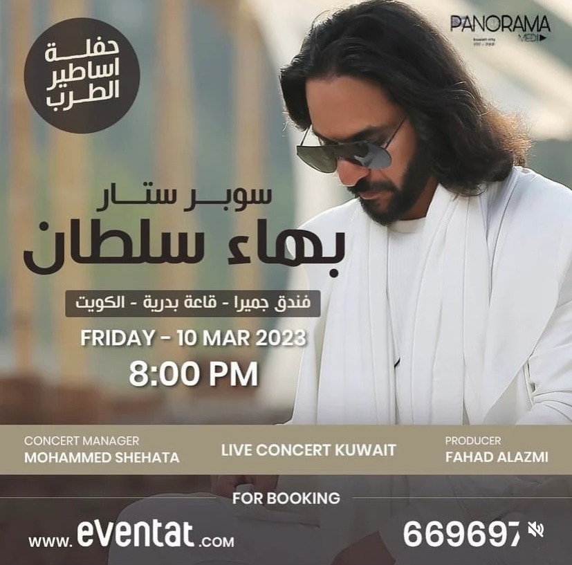 يستعد المطرب بهاء سلطان لـ أحياء حفل غنائي في دولة الكويت، وذلك في يوم 10 من شهر مارس المقبل، ضمن حفلات النجوم المختلفة في 2023.