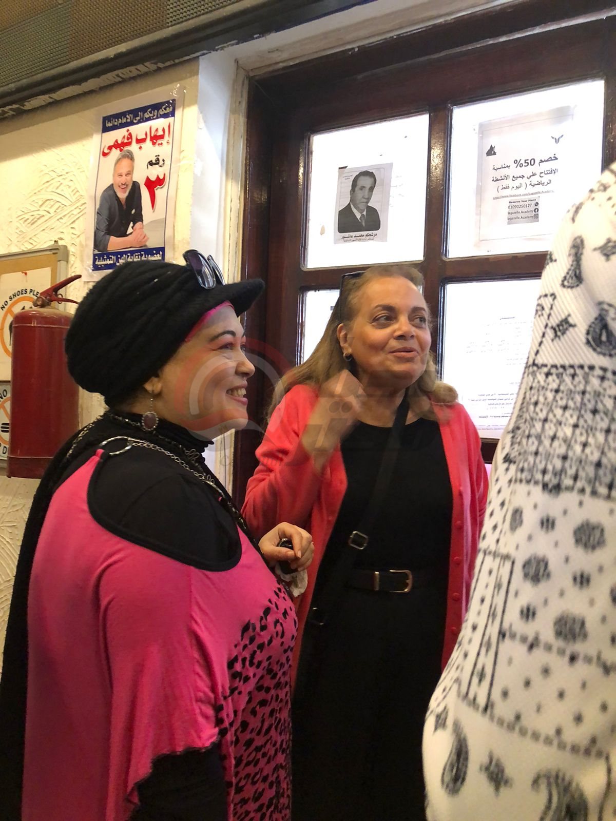 وظهرت عفاف رشاد وهي تتحدث مع أصدقائها وعلى وجهها تفاؤل وبسمة رغم المنافسة القوية التي يشهدها أعضاء نقابة المهن التمثيلية اليوم.