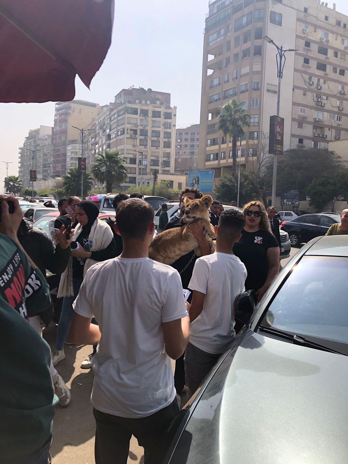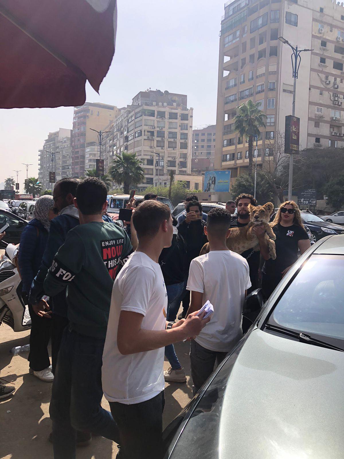 وظهر في يد المؤيدين للفنان أشرف زكي، أسد صغير وكأنه يرمز له، مما أثار التساؤلات حول هذه الطريقة الغريبة في الدعم.