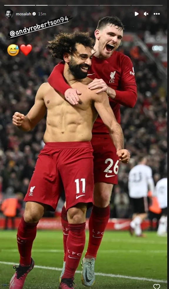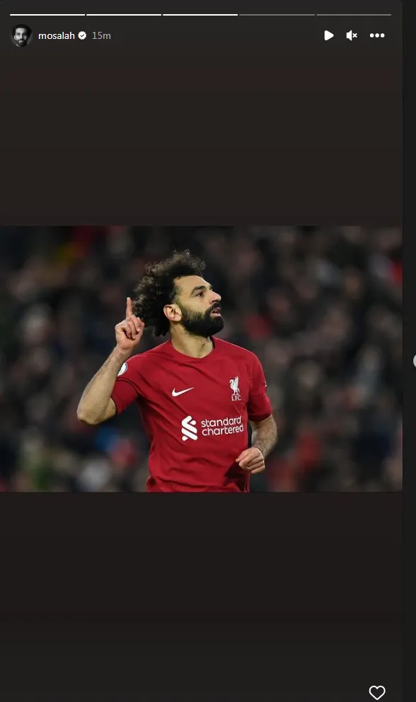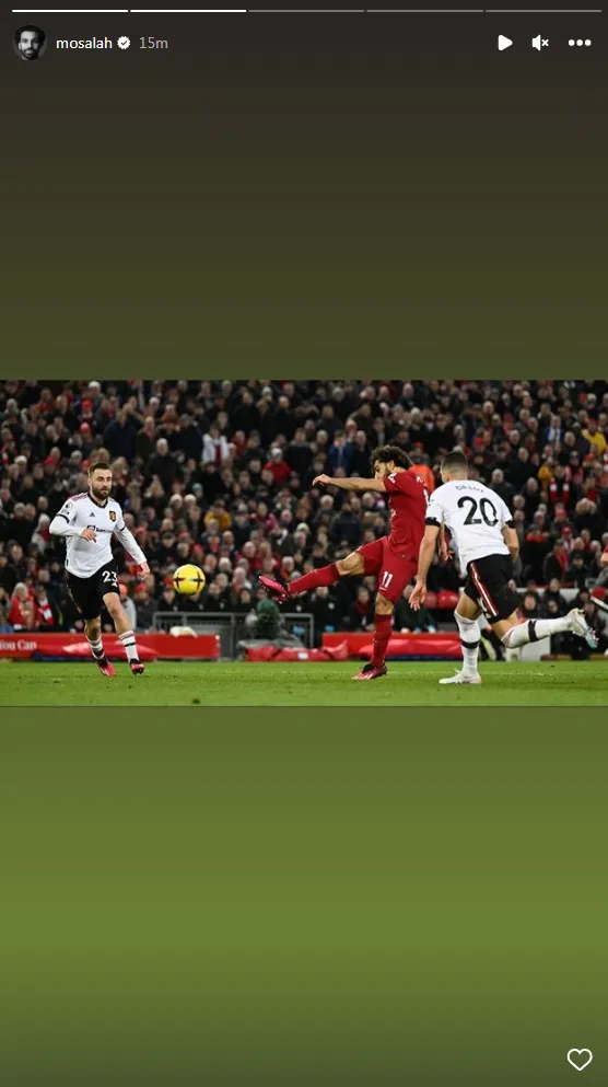 ونشر صلاح، استوري عبر حسابه الرسمي بموقع التواصل الاجتماعي “ انستجرام”، تحوي على العديد من صور مباراة الأمس أمام فريق اليونايتد.