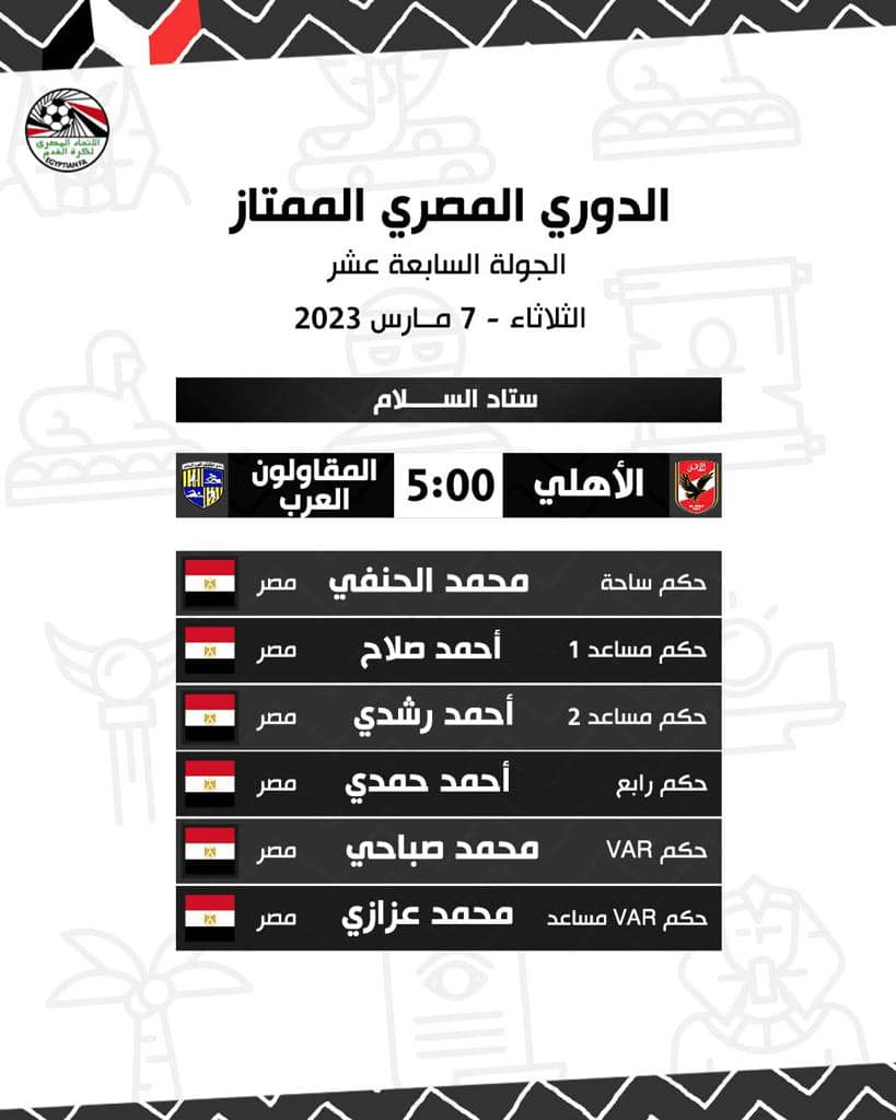 طاقم حكام مباراة الأهلي والمقاولون العرب