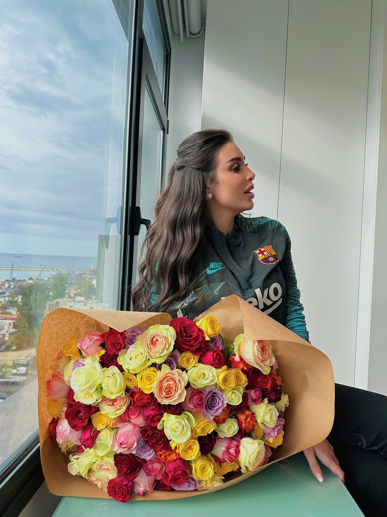 وظهرت الفنانة ياسمين صبري خلال الصور وهي ترتدي الملابس الرياضية وتحمل بوكيه مليء بالورود الملونة ومكياج هادئ واعتادت ياسمين صبري أن تشارك متابعيها وجمهورها على مواقع التواصل المختلفة العديد من الإطلالات المتنوعة على مدار يومها ومقاطع من حياتها الشخصية.