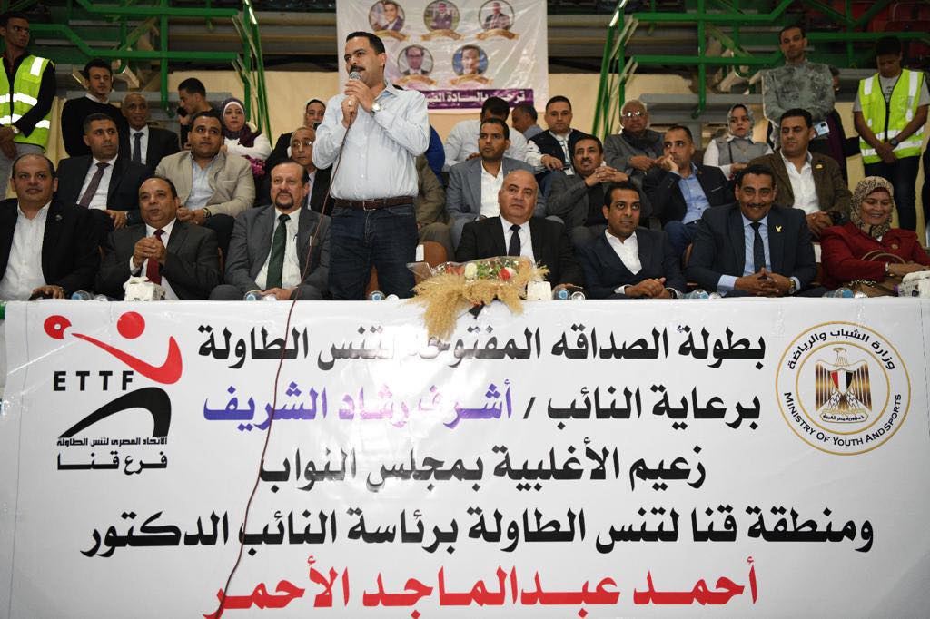 كما حضر النائب حمادة الجبلاوى عضو مجلس النواب ، وكيل لجنة الطاقة والبيئة بمجلس النواب ، النائبة سناء الحسانى عضو مجلس النواب ، الأستاذ محمد عبد الستار أمين شباب محافظة قنا ، العمدة عز كرار أمين مركز قنا ، الدكتور مصطفي محمود حامد أمين العلاقات العامة ، عضو مجلس إدارة منطقة قنا لتنس الطاولة.