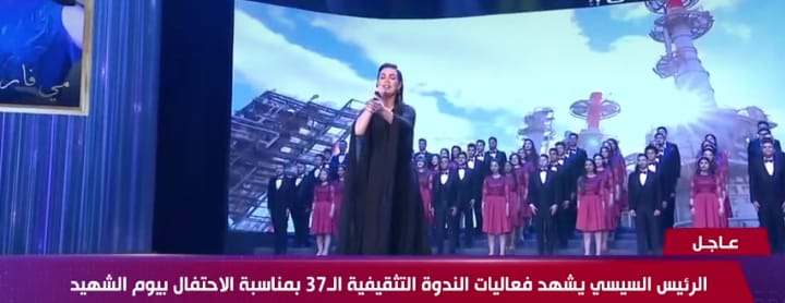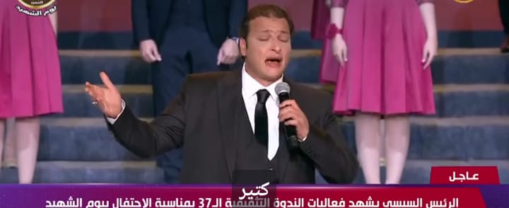 قدم عدد من مطربي الفن مجموعة من الأغاني الوطنية خلال فعاليات الندوة التثقيفية الـ 37 للقوات المسلحة، والتي أقيمت منذ قيل في مركز المنارة للمؤتمرات الدولي، بحضور الرئيس عبد الفتاح السيسي، احتفالا بيوم الشهيد.