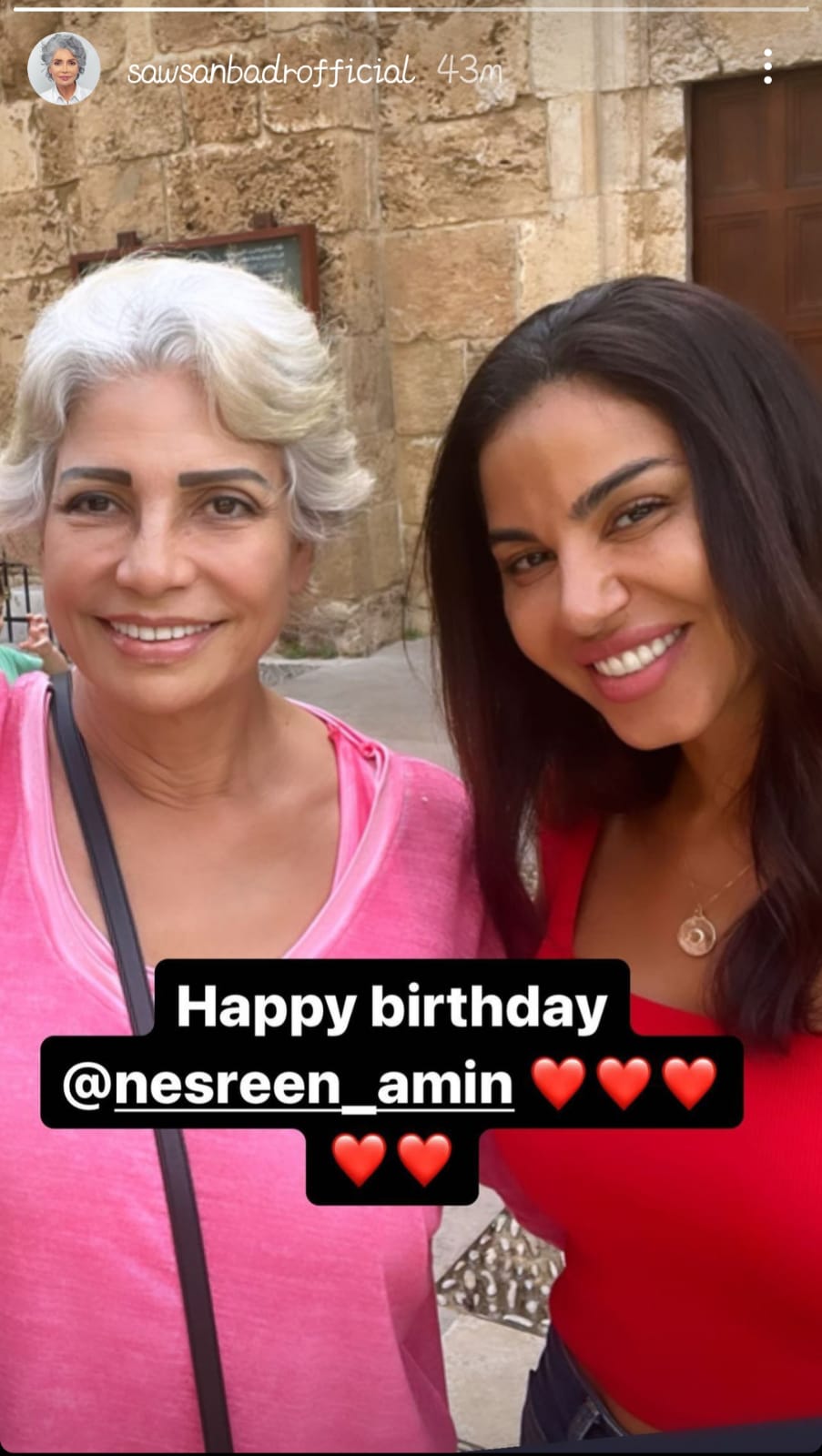 حرصت الفنانة سوسن بدر على تهنئة الفنانة نسرين أمين بحلول يوم ميلادها وذلك عبر حسابها الرسمي على موقع انستجرام .