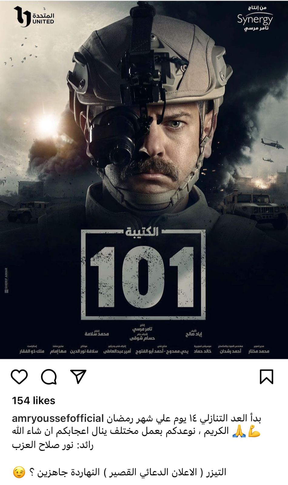 روج الفنان عمرو يوسف لمسلسله الرمضاني الكتيبة 101 وذلك عبر حسابه الرسمي بموقع تبادل الصور والفيديوهات الشهير انستجرام.