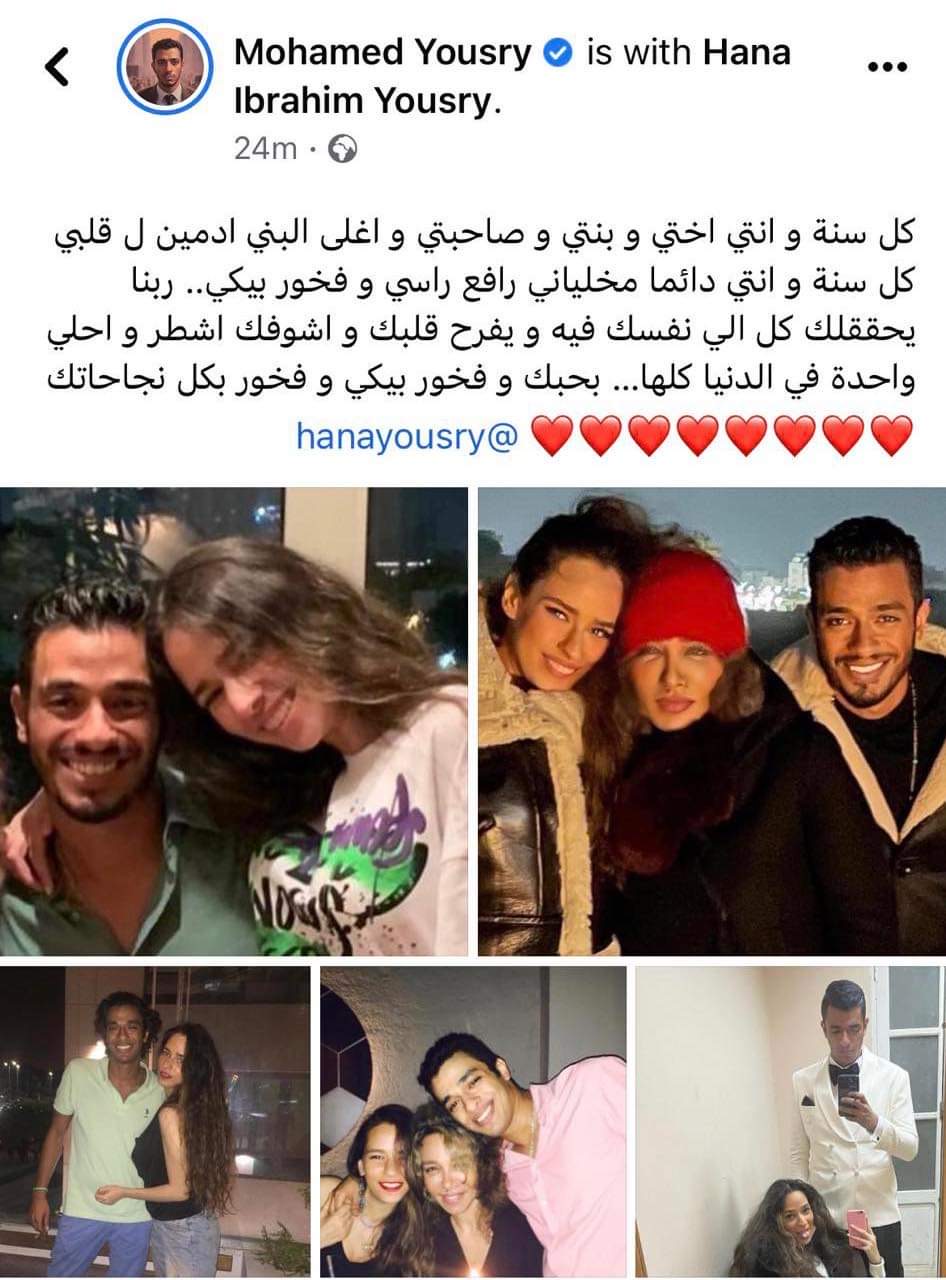 ونشر محمد يسري صور تجمعه بشقيقته، معلقًا: كل سنة و انتي اختي و بنتي و صاحبتي و اغلى البني ادمين ل قلبي كل سنة و انتي دائما مخلياني رافع راسي و فخور بيكي.