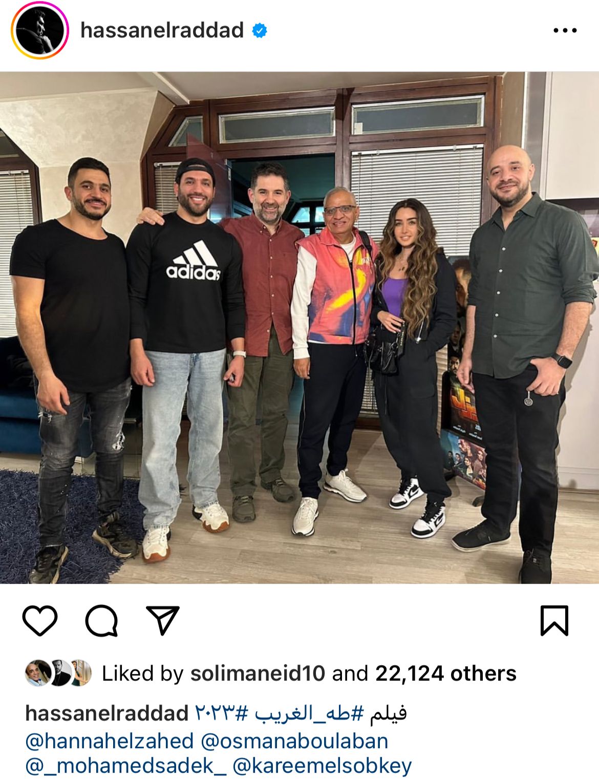 ونشر حسن الرداد عبر حسابه الرسمي بموقع تبادل الصور والفيديوهات الشهير انستجرام، صورة تجمعه بطاقم عمل الفيلم.