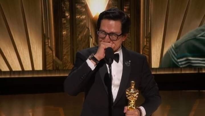 بكاء كي هوي كوان بعد فوزه بجائزة أفضل ممثل مساعد في أوسكار 2023