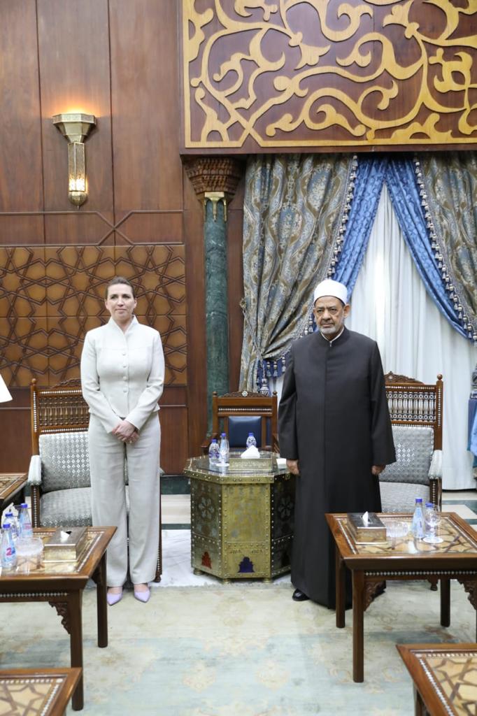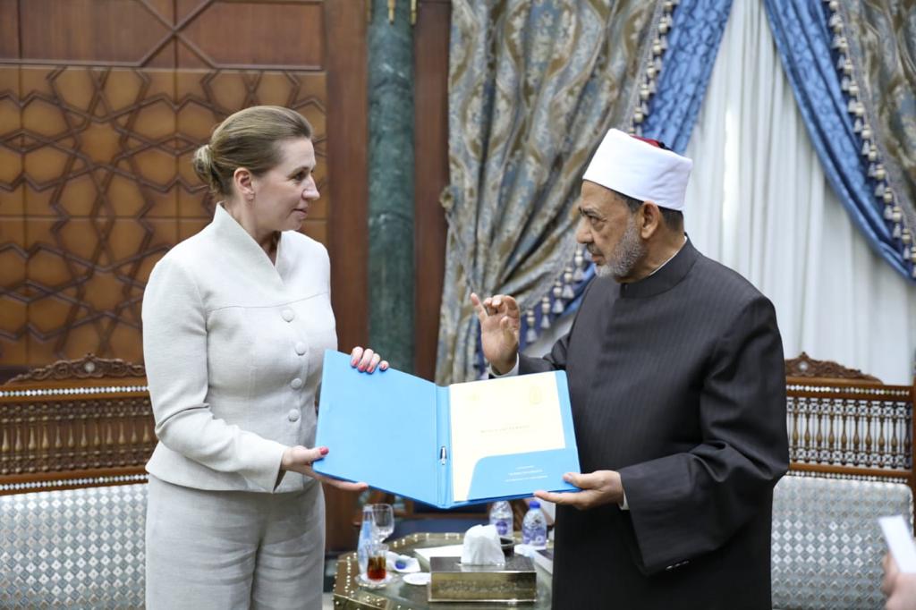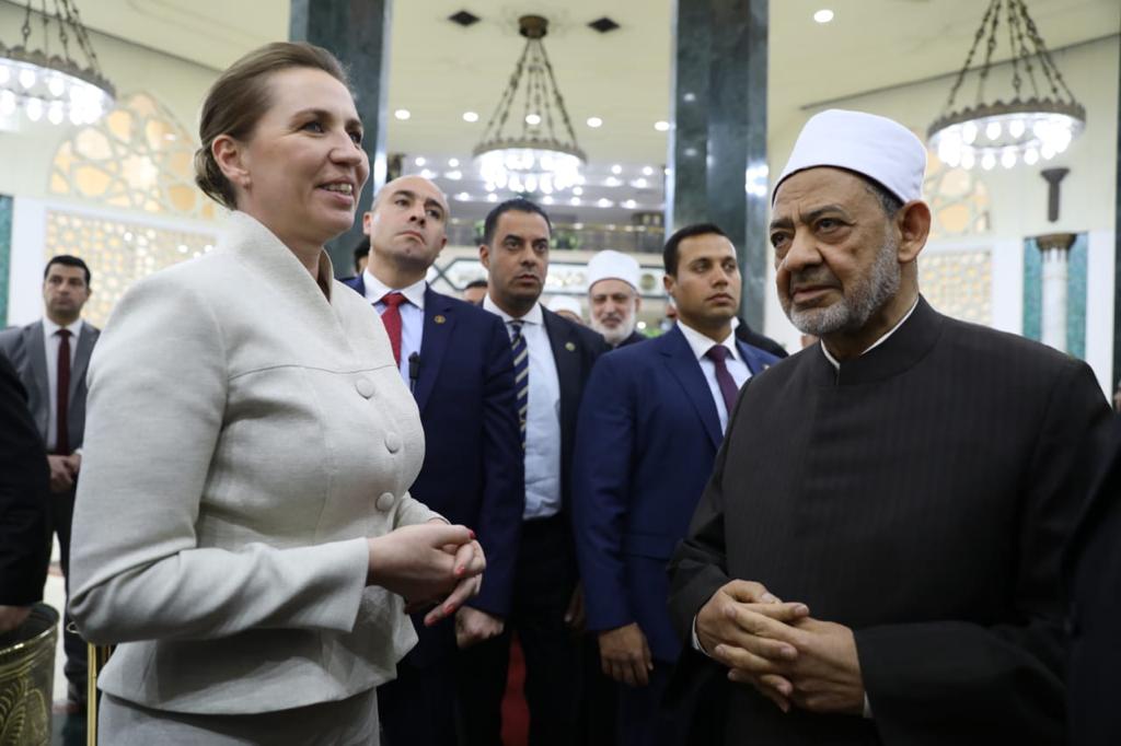 من جهتها، أعربت رئيسة وزراء الدنمارك عن تقديرها لما يقوم به شيخ الأزهر من جهود لنشر قيم الأخوة الإنسانية والسلام العالمي والتعايش بين البشر، مؤكدًة أنَّ بلادها حريصة على كفالة حق الاختلاف، وأنها تولي اهتمامًا كبيرًا لترسيخ التواصل بين الشرق والغرب، وتعميق الصداقة بين الشعوب الشرقية والغربية، وأنها تتفق مع طرح شيخ الأزهر في خطورة الهجرة غير الشرعية وأن مصر تمثل شريكًا مهمًّا وتقوم بدور فعال تجاه هذه الظاهرة، وأن هذه التحديات تحتاج إلى تضافر الجهود لحلها وتحقيق إنجاز حقيقي على أرض الواقع.