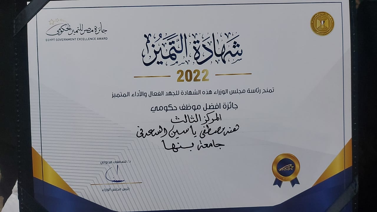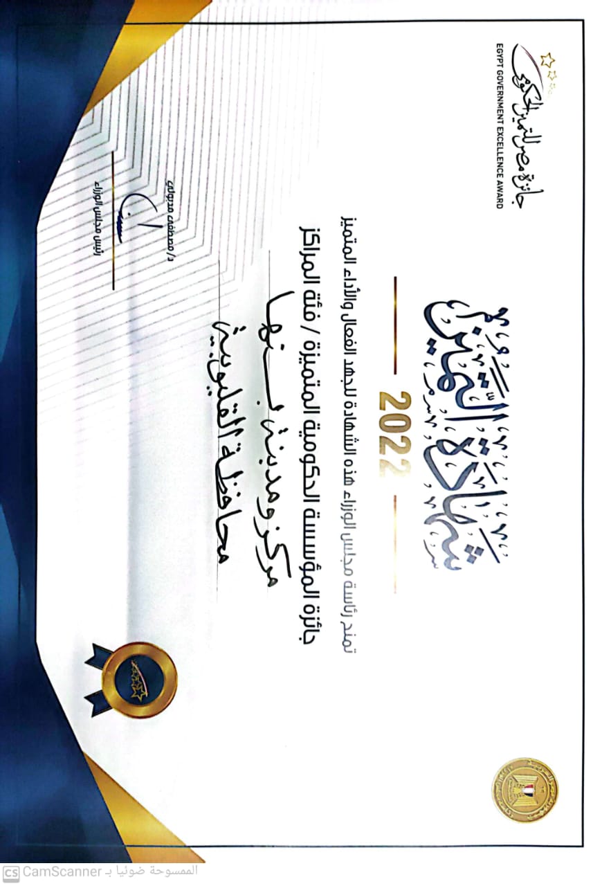 كما حصلت الوحدة المحلية لمركز ومدينة بنها ضمن المراكز العشرة الاولى على مستوى الجمهورية في مسابقة " جائزة مصر للتميز الحكومي " في دورتها الثالثة ٢٠٢٢ضمن جائزة المؤسسة الحكومية المتميزة - فئة المراكز.