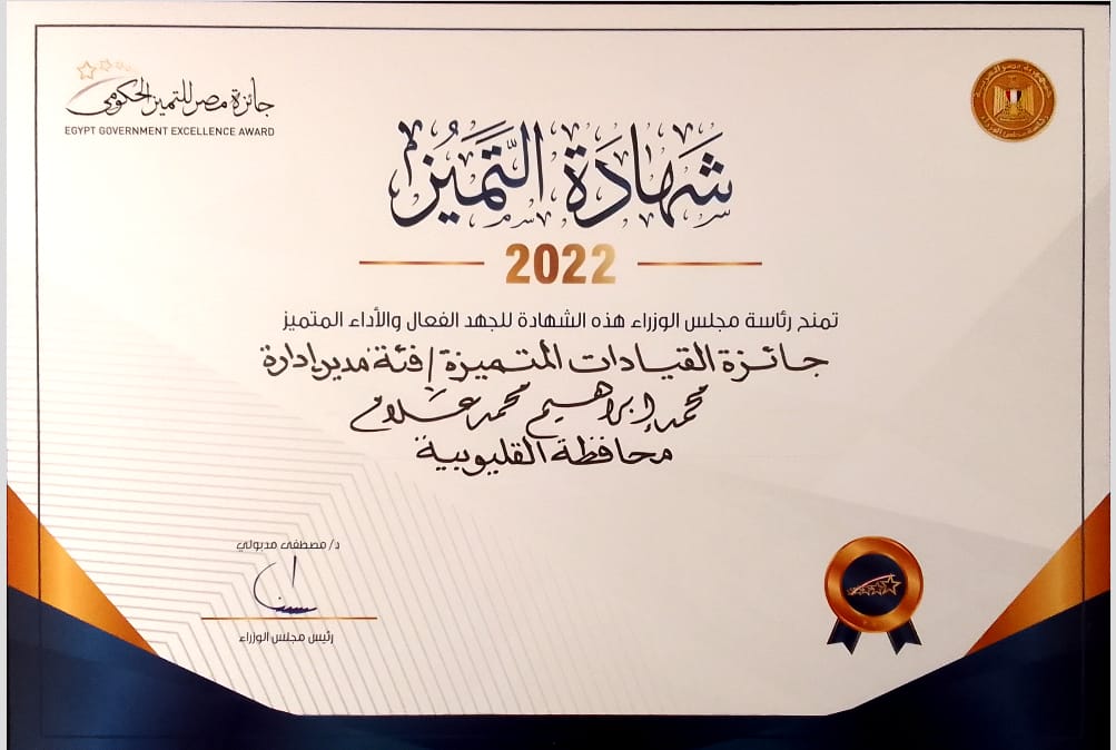 محافظة القليوبية تحصل على خمسة مراكز بالدورة الثالثة لجائزة مصر للتميز الحكومى