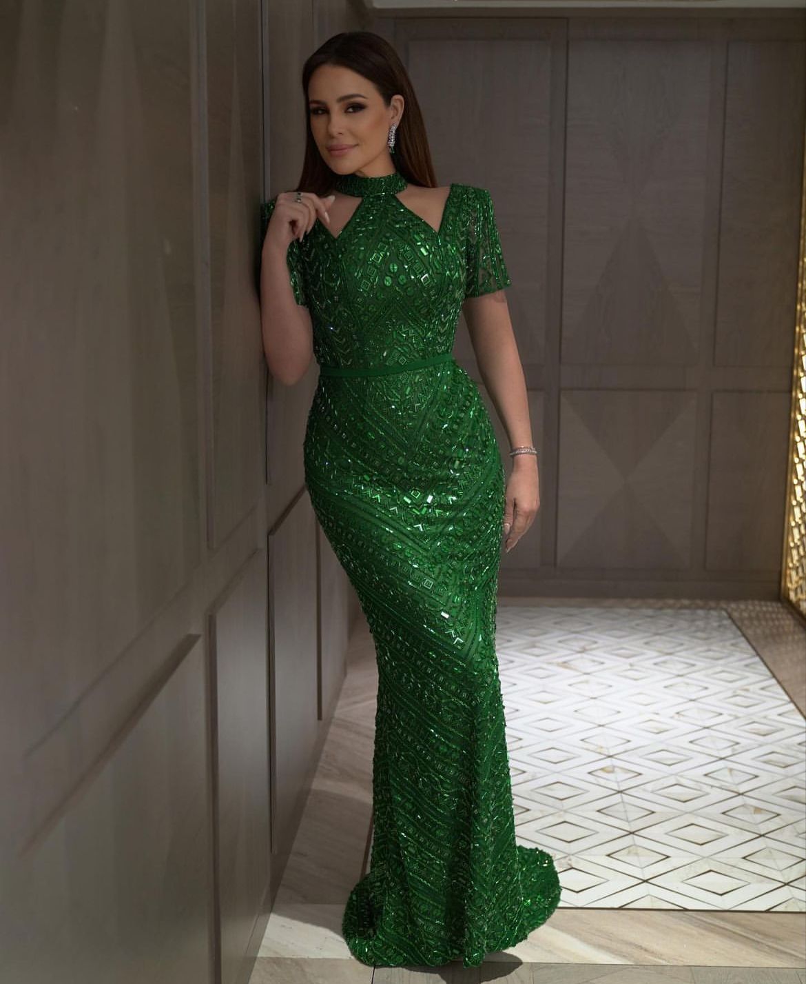 وظهرت كارول بفستان أخضر لامع، معلقة: الكويت أمل وفرح وحب.