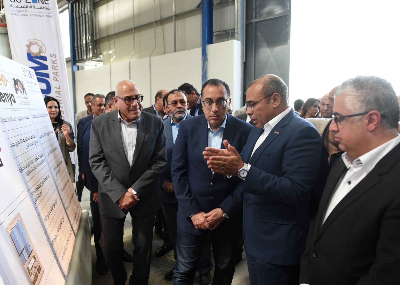 واصل الدكتور مصطفى مدبولي، رئيس مجلس الوزراء، جولته اليوم، بعدد من مشروعات المنطقة الاقتصادية لقناة السويس، وميناء العين السخنة، يرافقه كل من الفريق مهندس كامل الوزير، وزير النقل، و السيد القصير، وزير الزراعة واستصلاح الأراضي، والمهندس/ أحمد سمير، وزير التجارة والصناعة، واللواء عبد المجيد صقر، محافظ السويس، و وليد جمال الدين، رئيس الهيئة العامة لتنمية المنطقة الاقتصادية لقناة السويس، واللواء مختار عبد اللطيف، رئيس الهيئة العربية للتصنيع، وعدد من المسئولين.