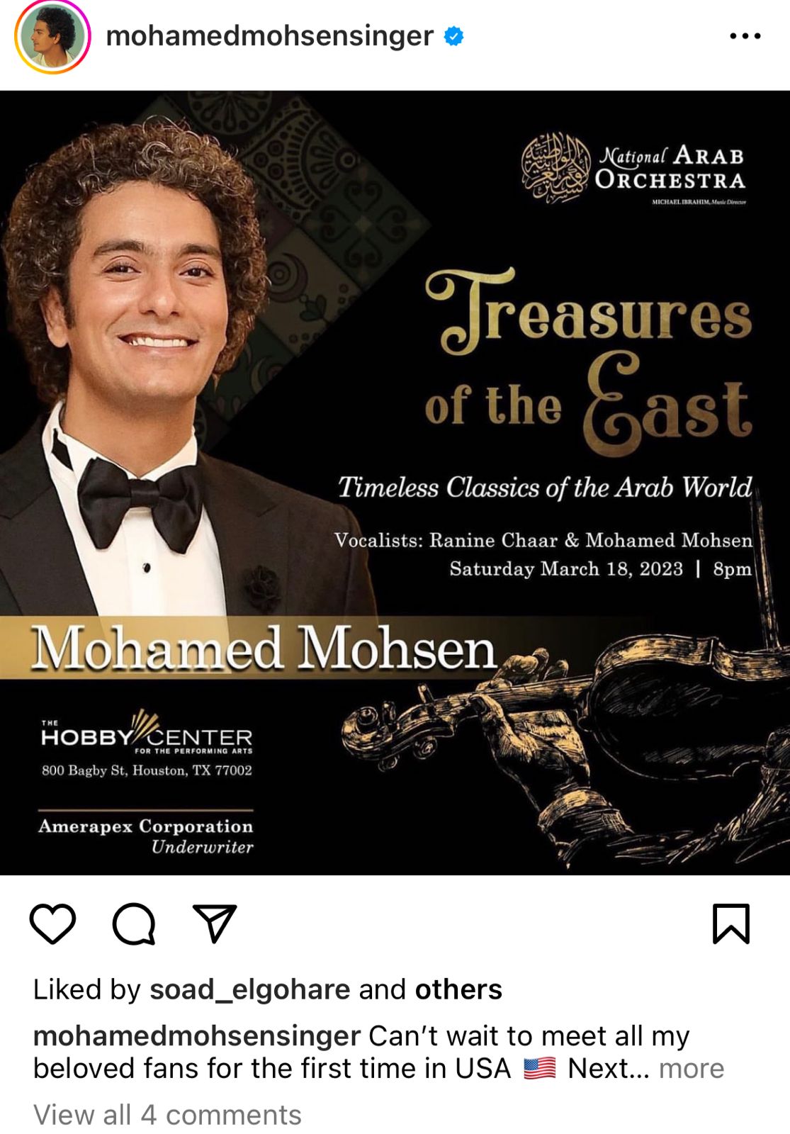 ونشر محسن البوستر الرسمي للحفل، معربًا عن سعادته الشديدة وحماسه لأولى حفلاته في أمريكا.