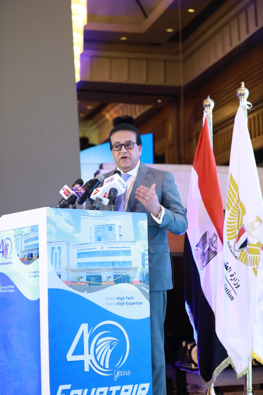 جاءت كلمة وزير الصحة والسكان، خلال مشاركته بفعاليات افتتاح المؤتمر الطبي الأول لمستشفى مصر للطيران للخدمات الطبية، بمناسبة مرور 40 عامًا على إنشاء المستشفى، والذي تنظمه مستشفى مصر للطيران، تحت شعار «خدمات طبية لحياة أفضل» برعاية الفريق محمد عباس حلمي وزير الطيران المدني، وبحضور الدكتور أيمن عاشور وزير التعليم العالي والبحث العلمي، والدكتور محمود المتيني رئيس جامعة عين شمس، وعددا من أساتذة الطب بالجامعات المصرية، وبعض الكوادر الطبية البارزة بمختلف التخصصات الطبية، وذلك لمناقشة أحدث ما توصل إليه العلم في مختلف التخصصات الطبية.