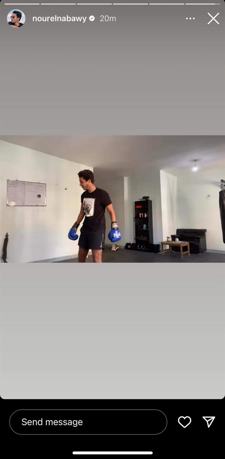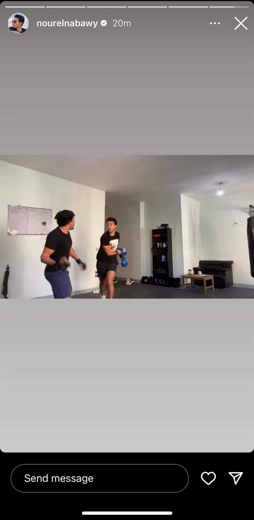 وظهر نور النبوي في فيديو نشره عبر خاصية ستوري، مرتديًا قفازات وملابس رياضية واستمر في ملاكمة شريكه.