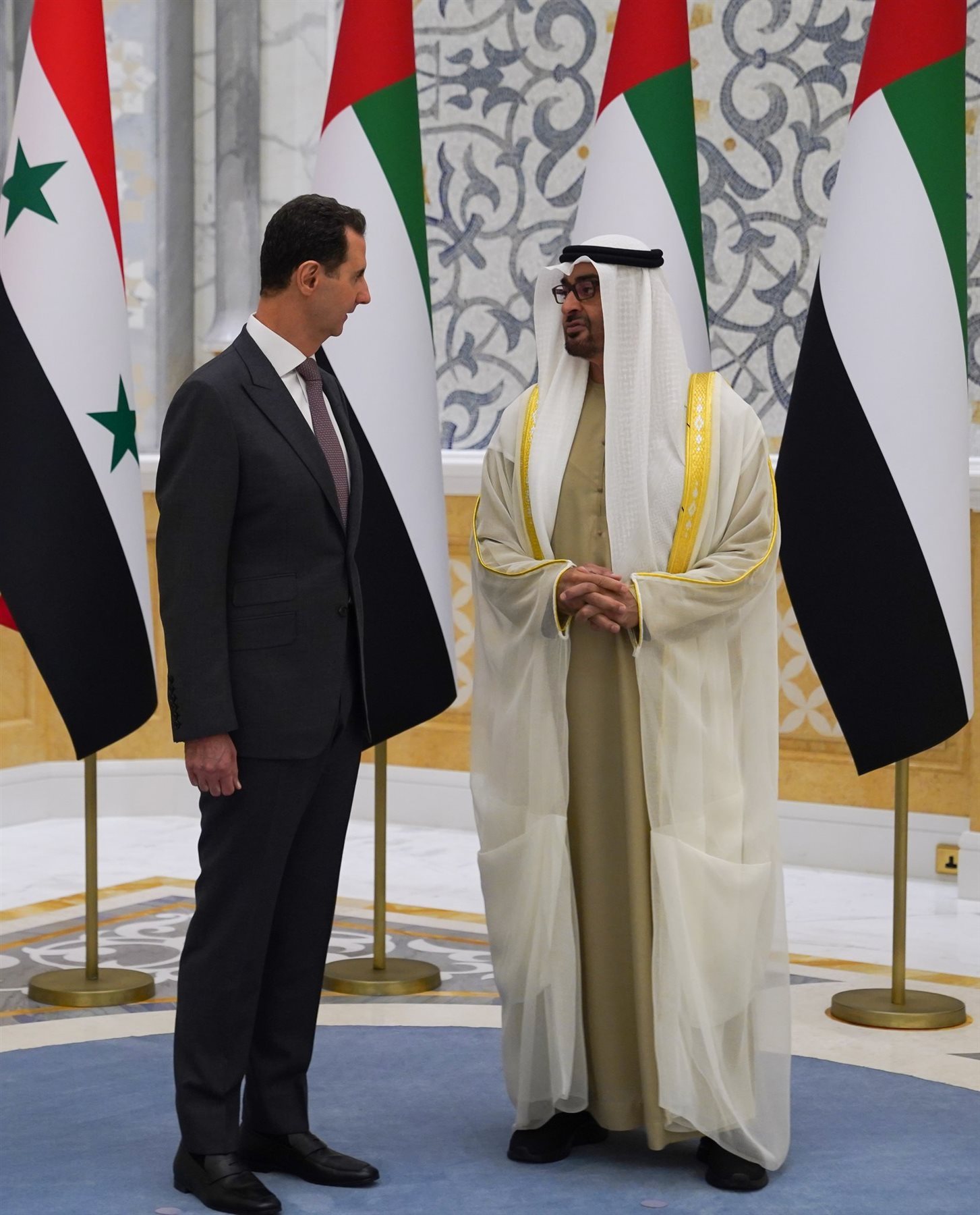 وبحسب ما ذكرته الرئاسة السورية فى بيان لها على تويتر، توجه الأسد إلى "قصر الوطن" لبدء المحادثات مع الشيخ محمد بن زايد آل نهيان،