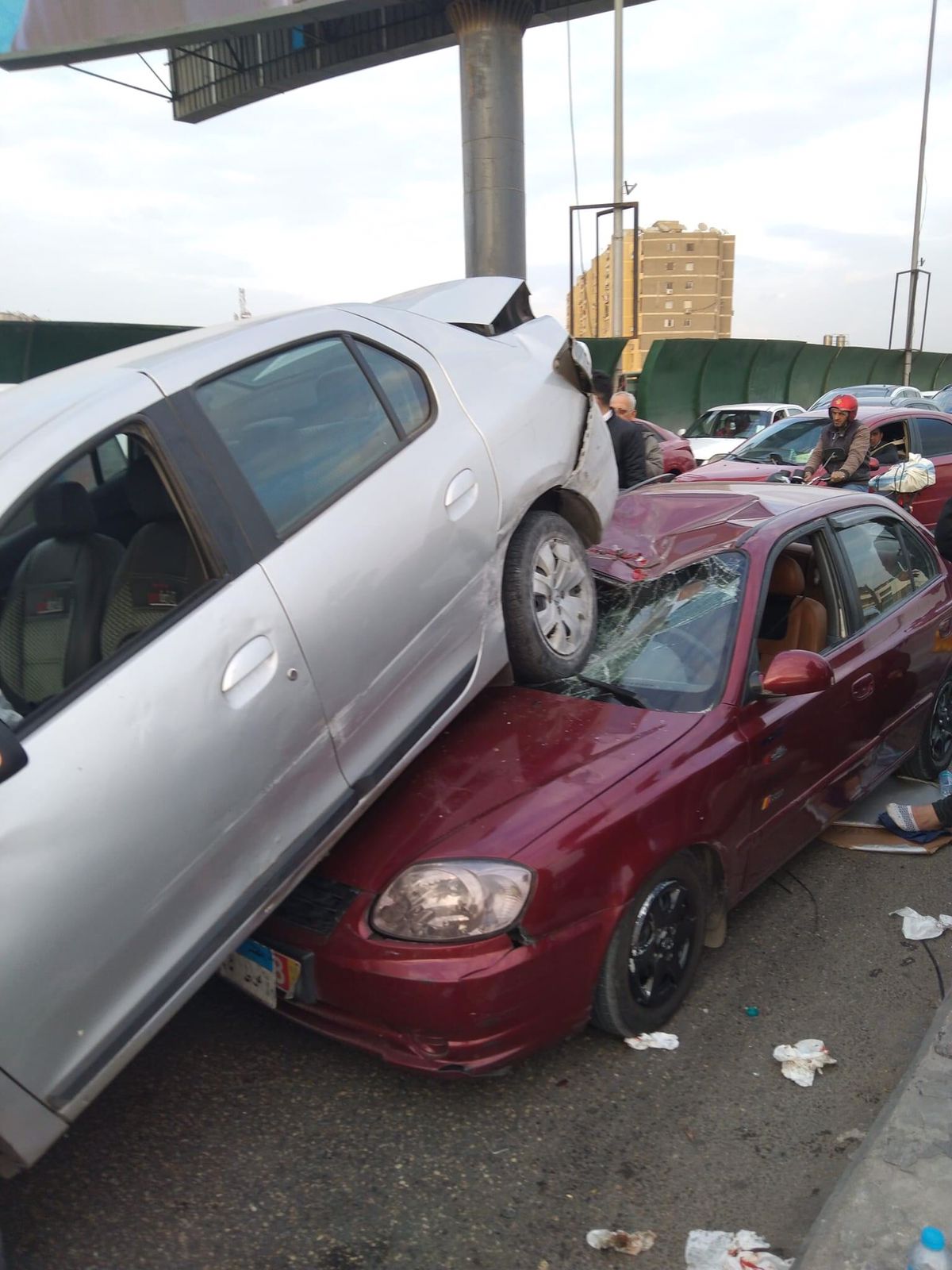 وتبين من تحريات أجهزة أمن القاهرة عبور سيارة ملاكي الاتجاه الأخر وتوقفها بعرض الطريق واصطدام سيارتين ملاكي بها ثم اصطدام سيارة رابعة بأحدهم من الخلف مما نتج عنه ارتفاعها لأعلى.