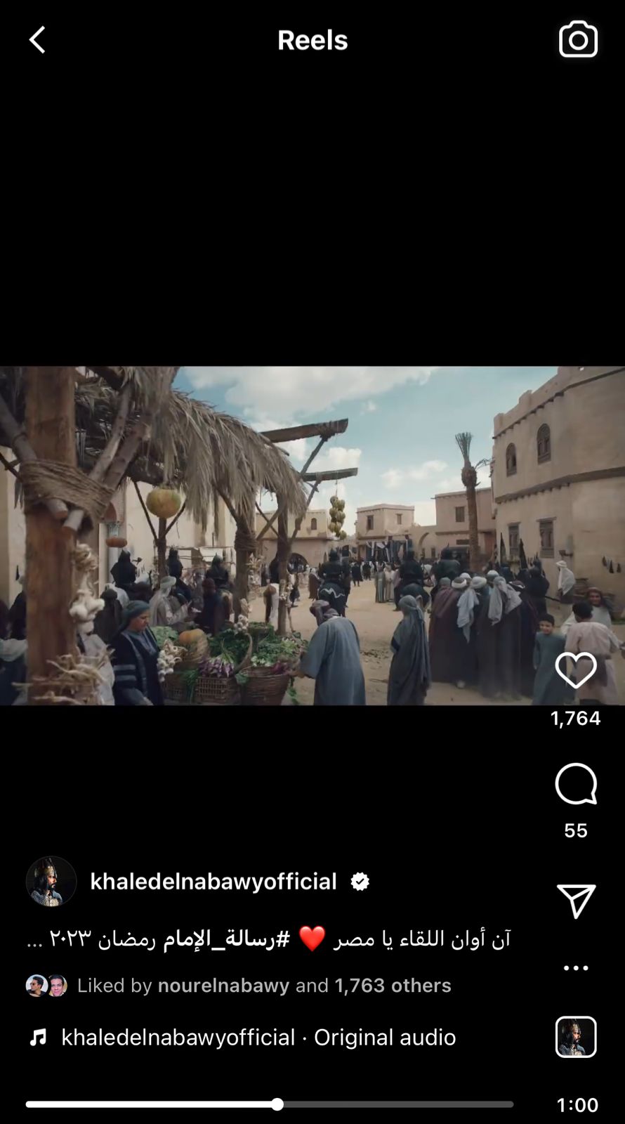 روج الفنان خالد النبوي لمسلسل رسالة الإمام عن طريق نشر البرومو الرسمي عبر حسابه الرسمي بموقع تبادل الصور والفيديوهات الشهير انستجرام.