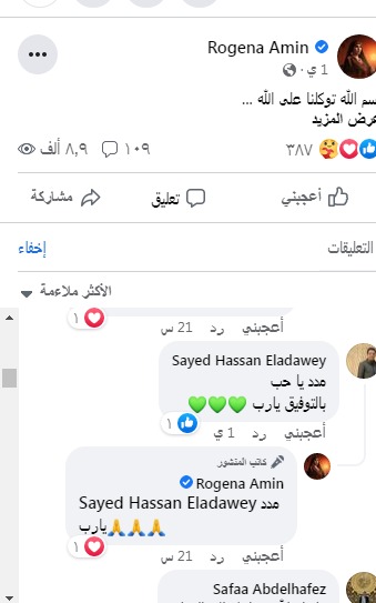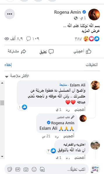وجاءت تعليقات آخرى: مسلسل جامد جدا واحلى واجمل مسلسل فى رمضان ان شاء الله شكلنا كده هنشوف حاجه عظمه السنادى، وجنيا هيكسر الدنيا كلها، فخورة بيكي دايما روجينا، انتي موهبة كبيرة لاتقلقي، عمل ضخم ورائع متأكدين، فخورين بستهم يا ستهم، ألف ألف مبروك الله الله أكيد عمل رائع دا كمان فيه الشيخ ياسين التهامى حبيبى منور الدنيا، نجمة رمضان"، وغيرها العديد من التعليقات التي تعبر عن مدى حب الجمهور للعمل.