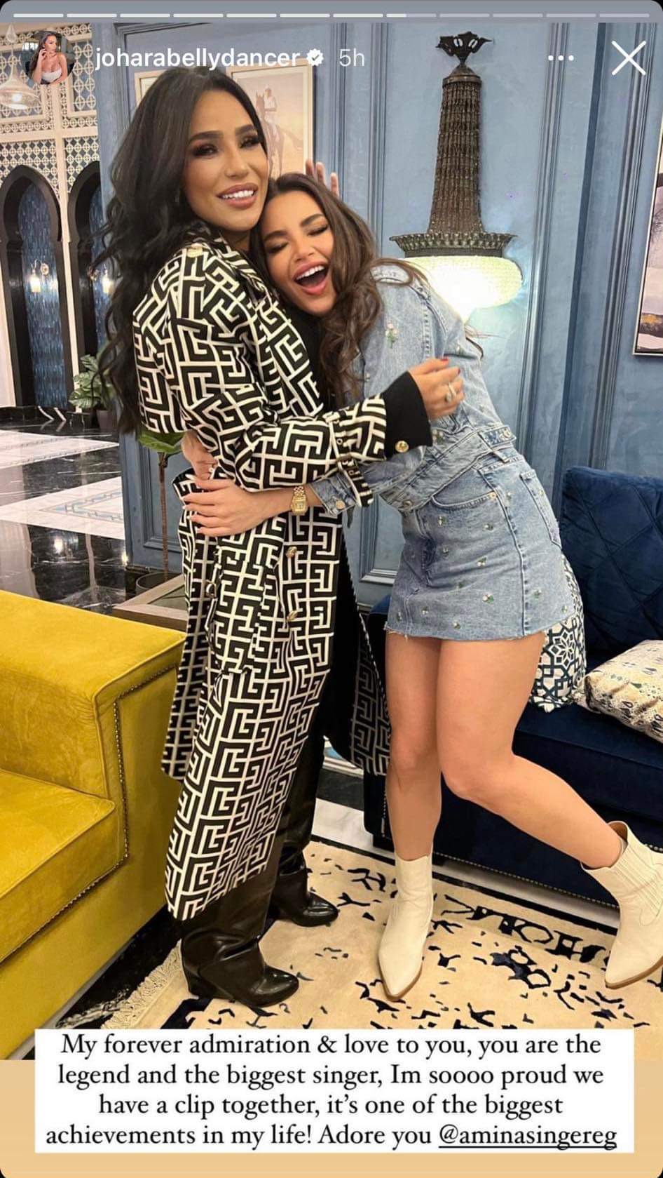 ونشرت جوهرة صورة تجمعها بالمطربة أمينة عبر خاصية ستوري بانستجرام، معلقة: أنا فخورة إننا هنعمل كليب سوا، دي حاجة من أهم انجازاتي في الحياة.. بعشقك.