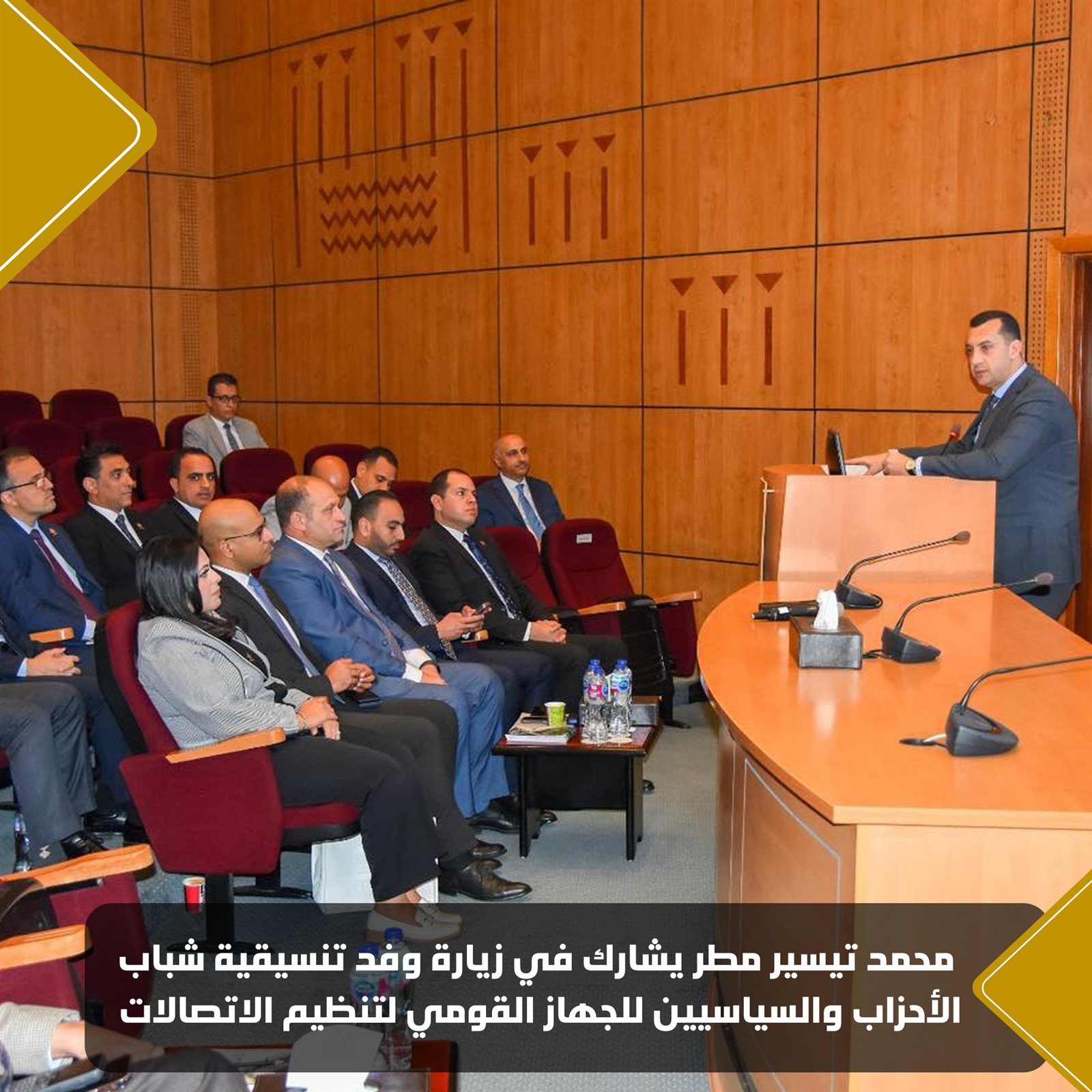 شارك النائب محمد تيسير مطر ضمن وفد تنسيقية شباب الأحزاب والسياسيين في زيارة للجهاز القومي لتنظيم الاتصالات بالقرية الذكية، وذلك في إطار بروتوكول التعاون بين التنسيقية والجهاز.