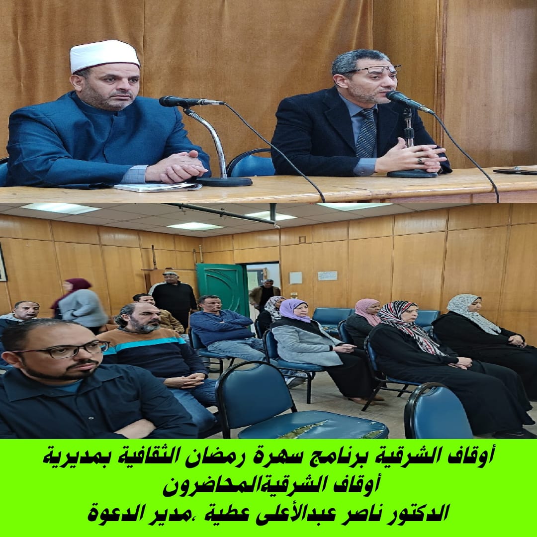 أقامت وزارة الأوقاف، فعاليات برنامج «سهرة رمضانية»، وذلك بالتعاون مع الهيئة العامة لقصور الثقافة ممثلة لوزارة الثقافة، ويأتي هذا في إطار الدور الدعوي والتثقيفي الذي تقوم به وزارة الأوقاف، وحرصها على الوصول بثقافة الإسلام الصحيحة إلى جميع شرائح المجتمع وأطيافه، وتهيئة الأجواء الإيمانية في شهر رمضان المبارك.