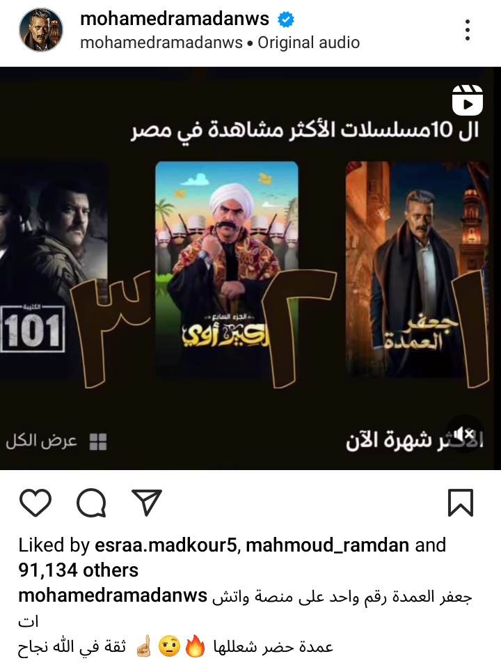 وعلق محمد رمضان على الفيديو،والذي أرفقه بأغنية “ولعانة”: “جعفر العمدة رقم واحد على منصة واتش ات عمدة حضر شعللها، ثقة في الله نجاح”.