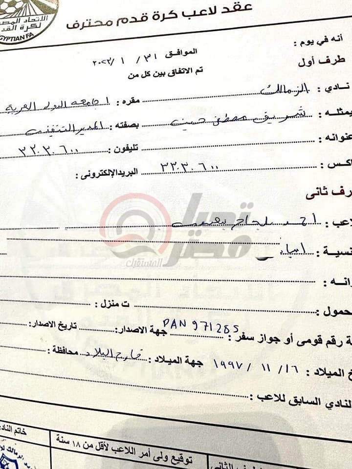 تسريب عقد أحمد بلحاج مع نادي الزمالك