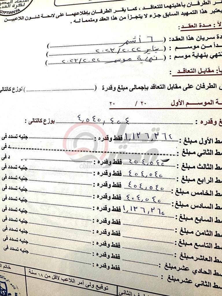 ويحصل اللاعب المغربي أحمد على مبلغ حوالي 4 ونصف مليون جنيه في 6 أشهر، على دفعات حيث يحصل على القسط الأول مقابل مليون و136 ألف جنيه، والقسط الثاني على 454 ألف جنيه، وباقي القيمة على باقي الأشهر.