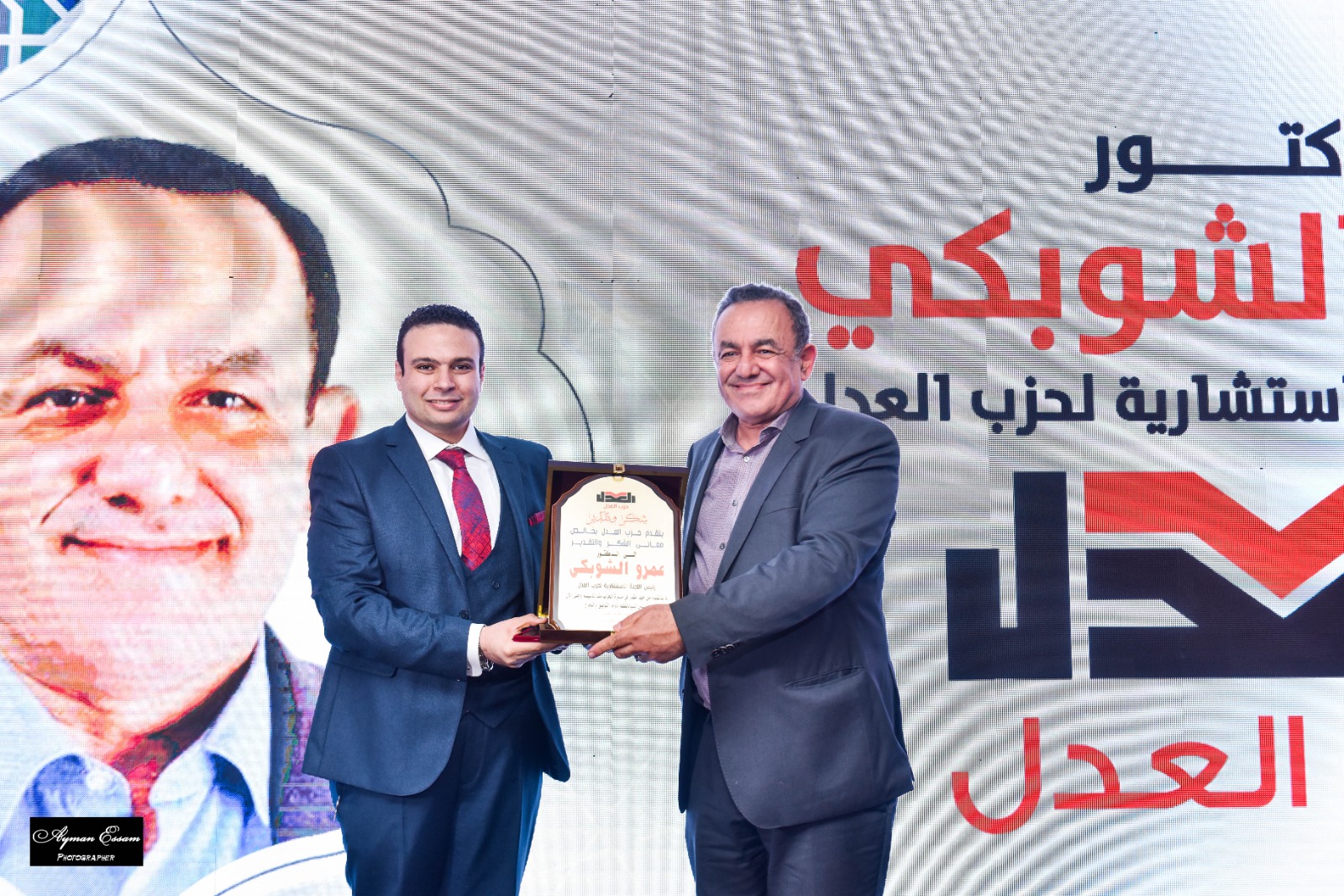 كما تم تكريم عماد السيد أحمد، والمهندس حمدي سطوحي، رؤساء حزب العدل السابقين، والدكتور عمرو الشوبكي رئيس الهيئة الاستشارية لحزب العدل، في مشهد غير مألوف في الحياة الحزبية للحياة السياسية المصرية.