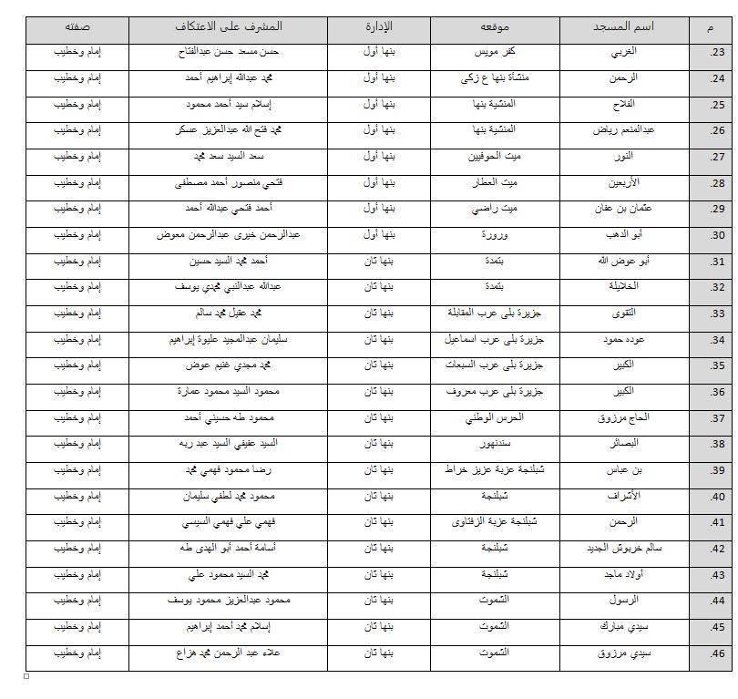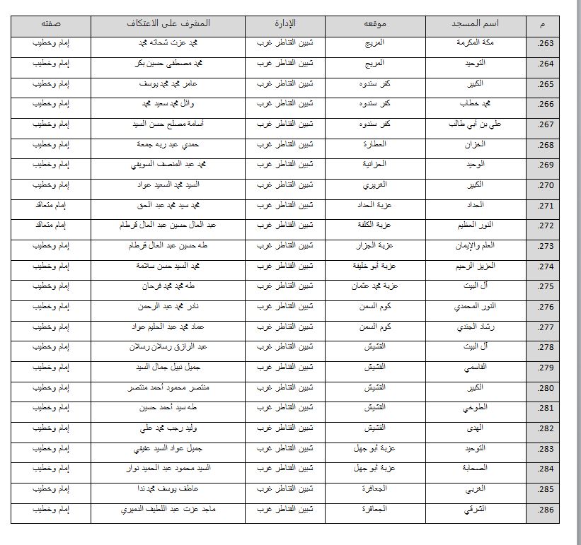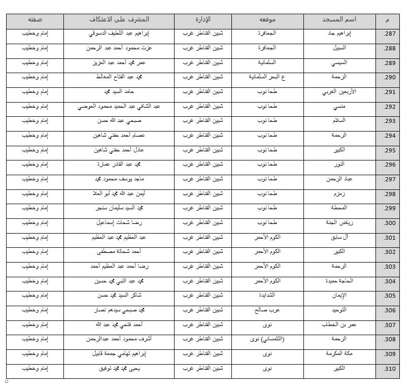 أسماء المساجد المسموح بالاعتكاف فيها داخل القليوبية