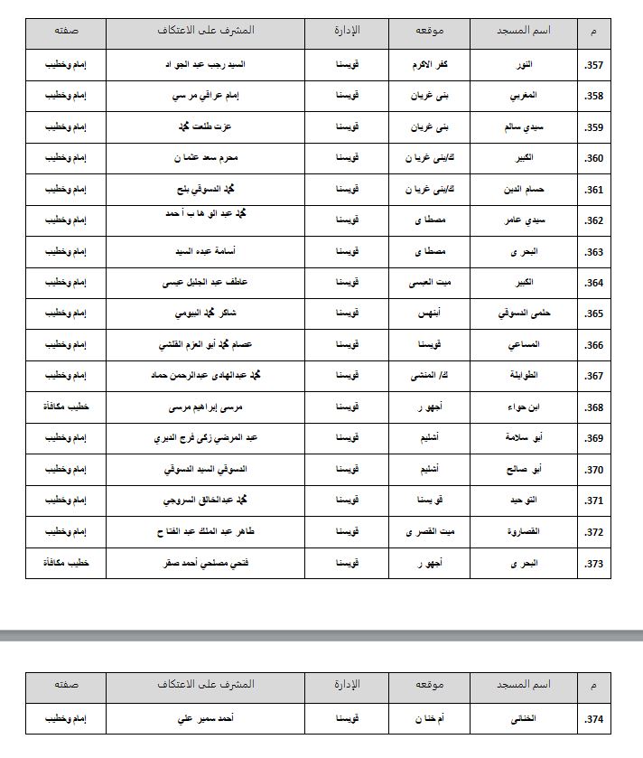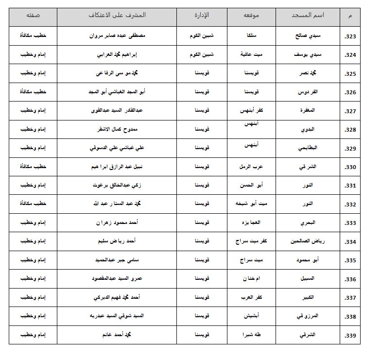 أسماء المساجد المسموح بـ الاعتكاف فيها داخل محافظة المنوفية (374 مسجدًا)