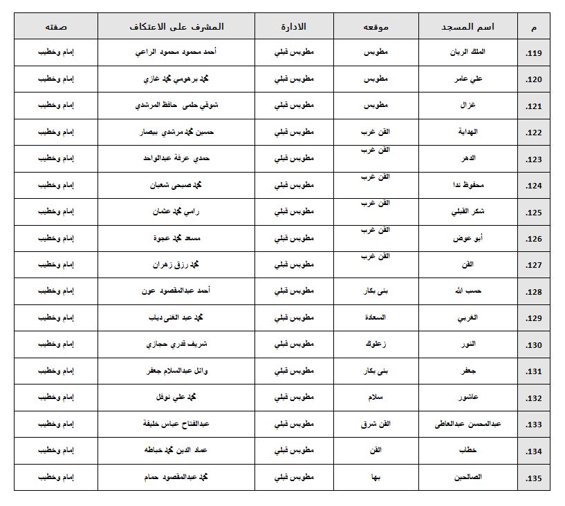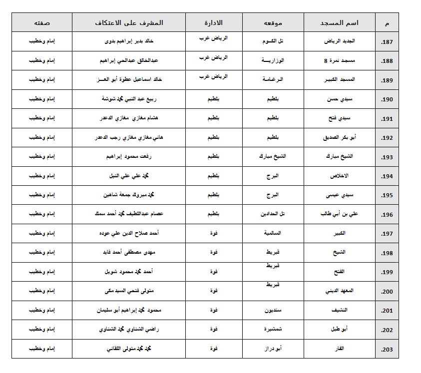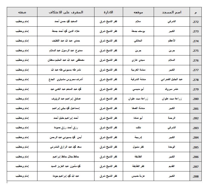 أسماء المساجد المسموح بالاعتكاف فيها داخل محافظة كفر الشيخ (301 مسجدا)
