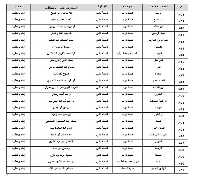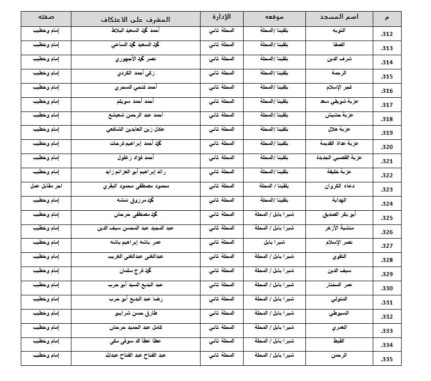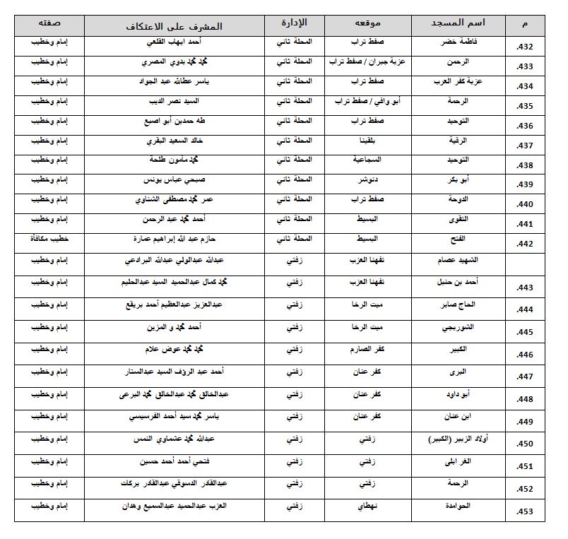 أسماء المساجد المسموح بالاعتكاف فيها داخل الغربية
