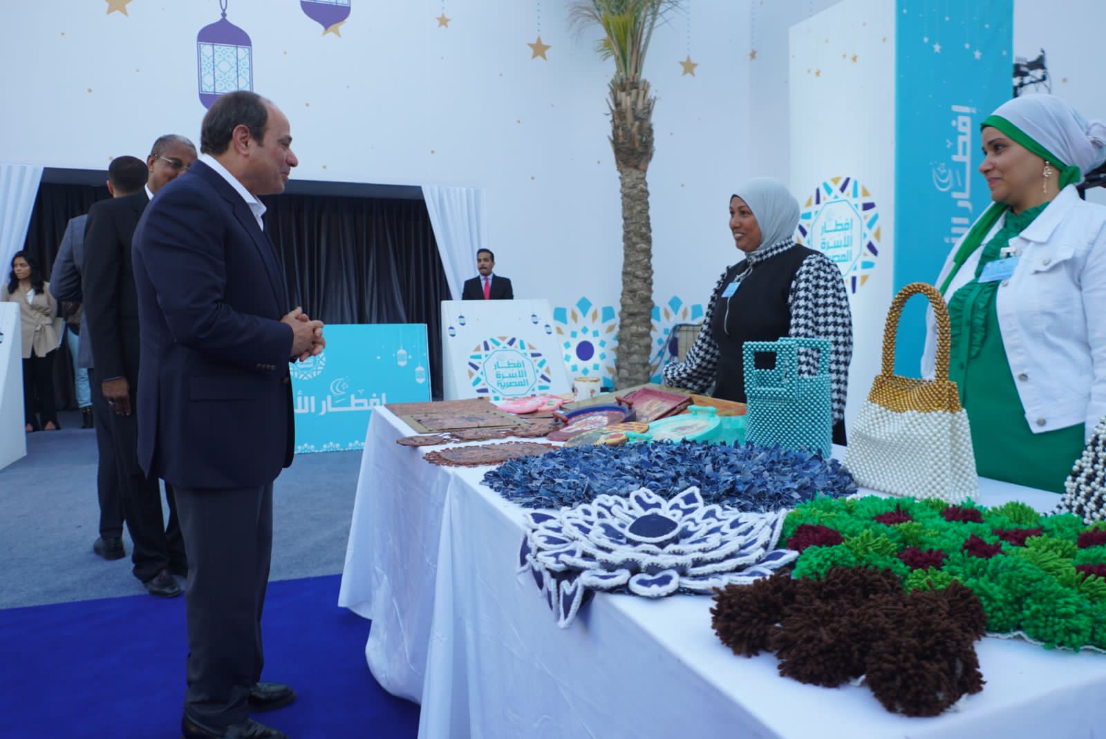 الرئيس السيسي يطمئن على أحوال مواطني الأسمرات في المساكن الجديدة خلال تفقده معرض الأسر المنتجة بالأسمرات