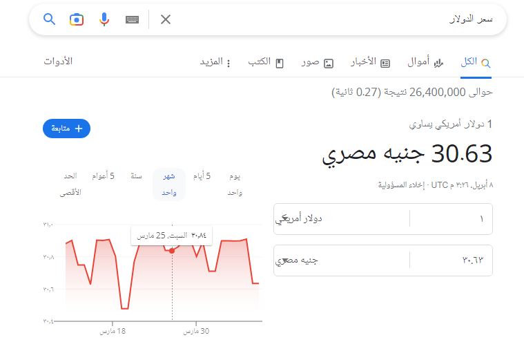 سجل سعر الدولار فى البنك الأهلى المصرى 30.75 جنيه للشراء، مقابل 30.85 جنيه للبيع.