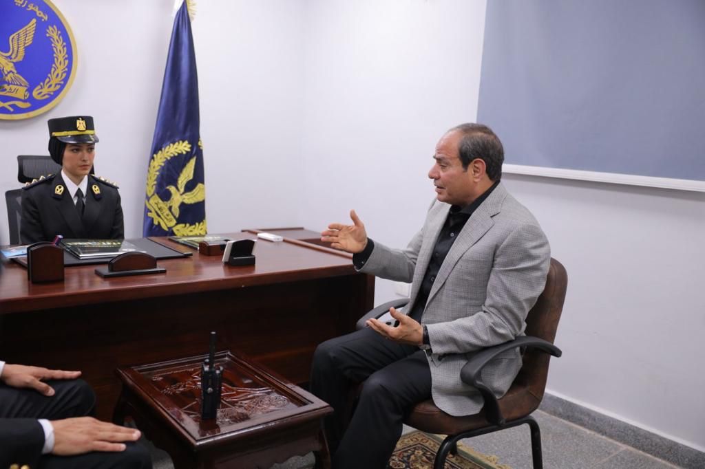 ودخل الرئيس السيسي في حوارا مع الضباط وأفراد الأمن المتواجدين داخل قسم مدينة نصر، وقالت له ضابطة: "حضرتك أنا ضابط حقوق الإنسان بديوان القسم، أنا دوري أستقبل وأرصد الحالات الإنسانية المترددة على القسم من كبار السن وذوي الهمم، ويتم تقديم المساعدة اللازمة لهم لتسهيل الإجراءات الخاصة بهم أثناء تواجدهم بالقسم".