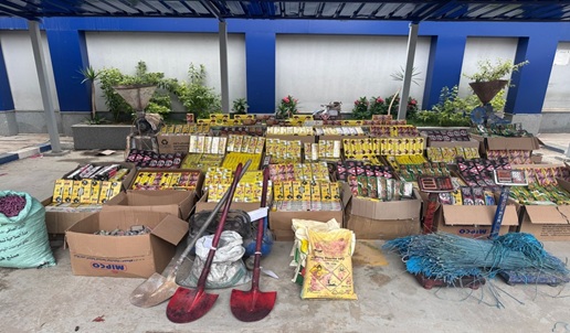وعُثر بداخلهم على (عدد 2 مليون و700 ألف صاروخ أحجام مختلفة "ألعاب نارية "- عدد 9 معدات وأدوات التصنيع- كمية كبيرة من فوارغ الصواريخ مُعدة للتعبئة "خاصة بالألعاب النارية"- 5000 فتيل إشتعالى- كمية من مواد التصنيع وزنت 260 كيلو جرام)، وبمواجهتهم إعترفوا بحيازتهم للمضبوطات بقصد الإتجار لتحقيق أرباح مالية، وتم إتخاذ الإجراءات القانونية.