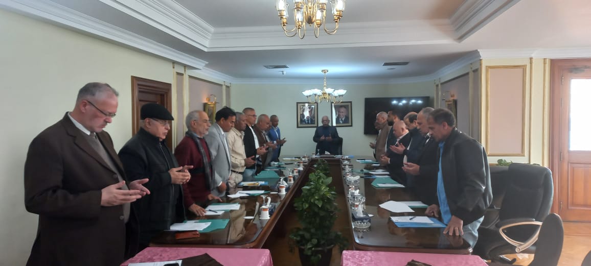 وشهد الاجتماع، الوقوف دقيقة حداد وقراءة الفاتحة، ترحما على الراحل عاطف أبا زيد، أمين صندوق النقابة العامة للعاملين بالبناء والأخشاب، والذي وافته المنية قبل أيام.