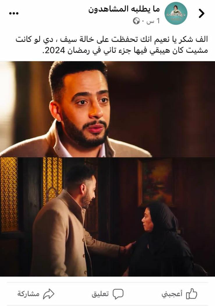 وما جعل المشاهدين يثبتون على توقعاتهم، هو تعليق الفنان عصام السقا على تحفظ نعيم على نجوى لتعترف لجعفر بأن سيف ابنه، وجاء تعليقه كالآتي: عدوا الجمايل لحد حلقة بكرا.