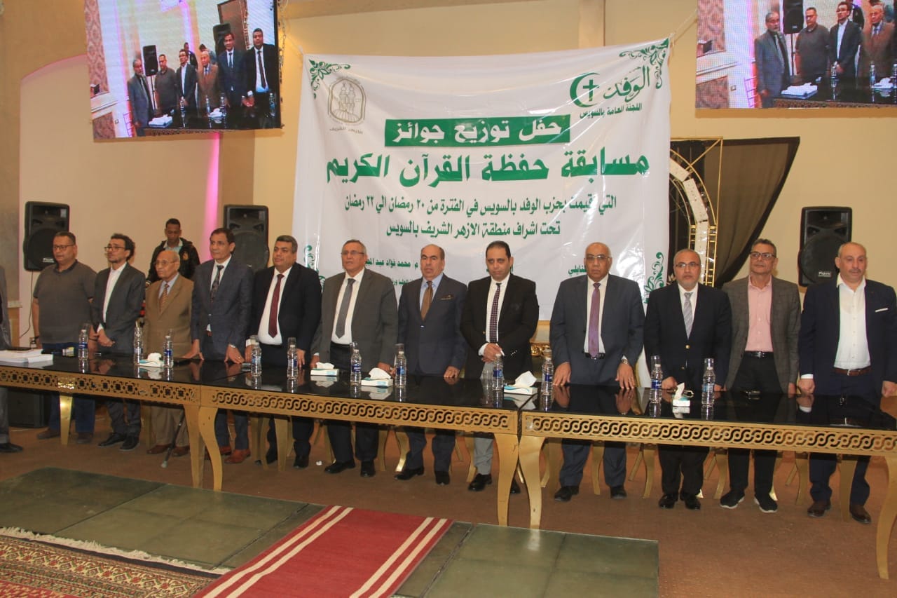 حضر الدكتور عبدالسند يمامة رئيس حزب الوفد حفل توزيع جوائز مسابقة حفظة القرآن الكريم التي تنظمها لجنة حزب الوفد بالسويس برئاسة محمد فؤاد عضو الهيئة العليا للوفد وبإشراف منطقة الأزهر الشريف بالسويس.