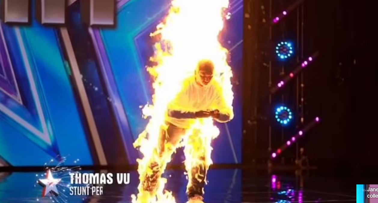ولم يصب المتسابق اي ضرر جراء اشعال النار في نفسه اثناء العرض، حيث انه تمت تغطية المتسابق " توماس فو" بجيل مثبط للحريق قبل أن يتم إشعال النار فيه، وهو محترف بالأعمال البهلوانية وقام بحل لغز الثمانينيات الايقوني "مكعب روبيك" بسرعة .